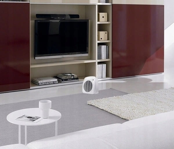 - Nowoczesny termowentylator DeLonghi HVY1020 z funkcją ciepłego nawiewu.