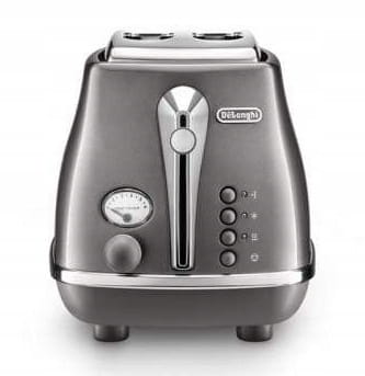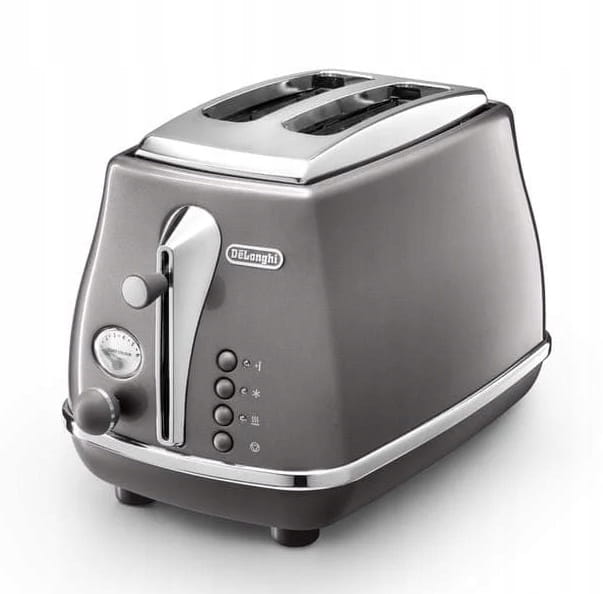 Zachwycający metalicznym, matowym wykończeniem i chromowanymi detalammi dwukromkowy toster.