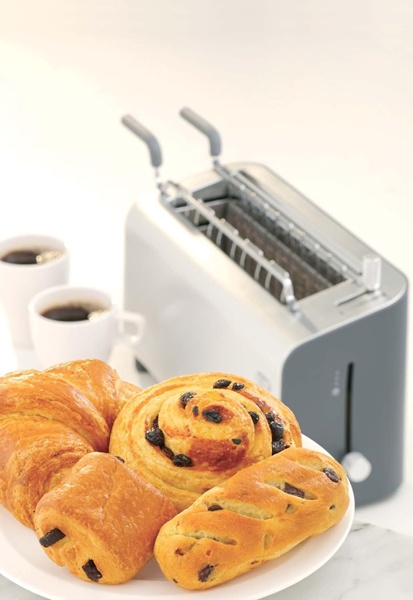 - Regulowana temperatura opiekania gwarantuje precyzję w przygotowywaniu doskonale chrupiących rogalików, tostów i kanapek typu panini