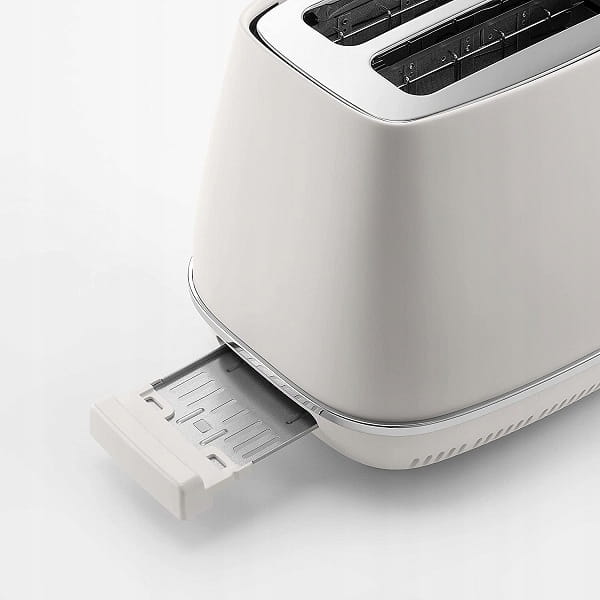 - Okruchy z opiekanego pieczywa spadają bezpośrednio na tackę, którą łatwo jest wyjąć i wyczyścić, zatem czyszczenie jest wygodne i nie zabiera wiele czasu.