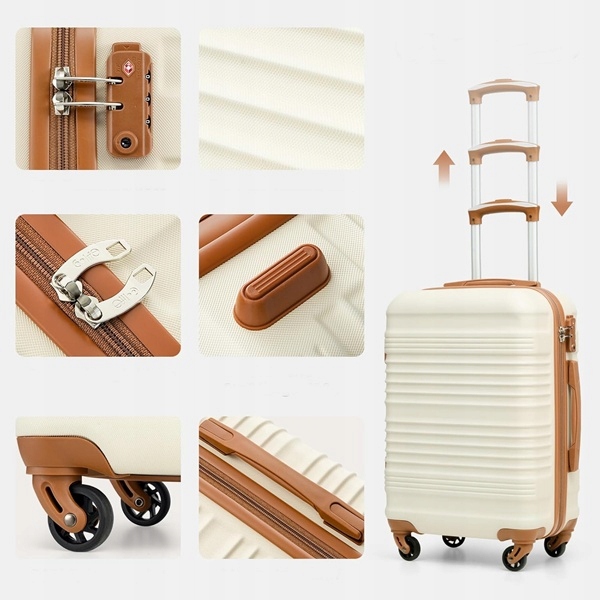 Twarda walizka kabinowa lekka ABS beż/brąz 2,6kg COOLIFE 38L