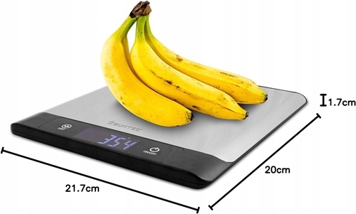 - Waży 5 kg z dokładnością do 1 g + funkcja tarowania
