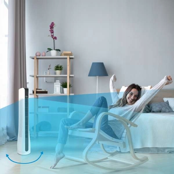 - Oszczędzający miejsce wentylator wieżowy zapewniający przyjemny klimat w pomieszczeniu.