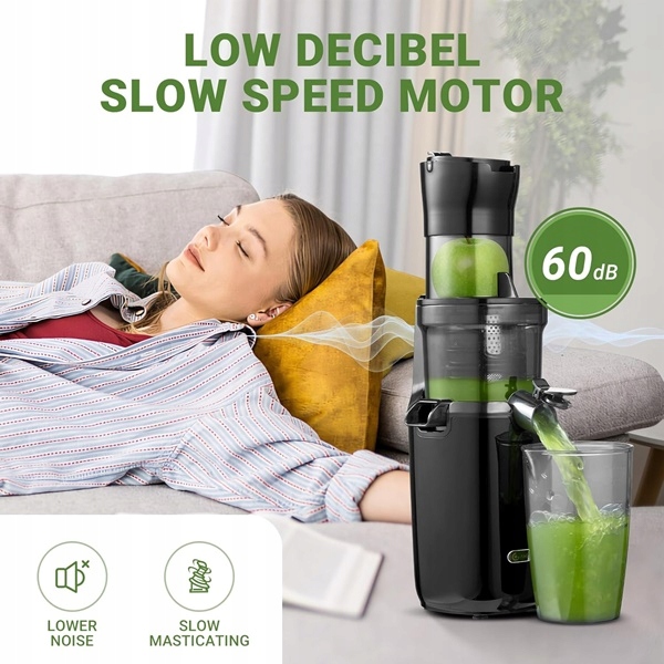 - Zwycięzca testu Slow Juicer pracuje tak cicho, z prędkością poniżej 60 decybeli i nie będzie przeszkadzać Twojej rodzinie i sąsiadom.