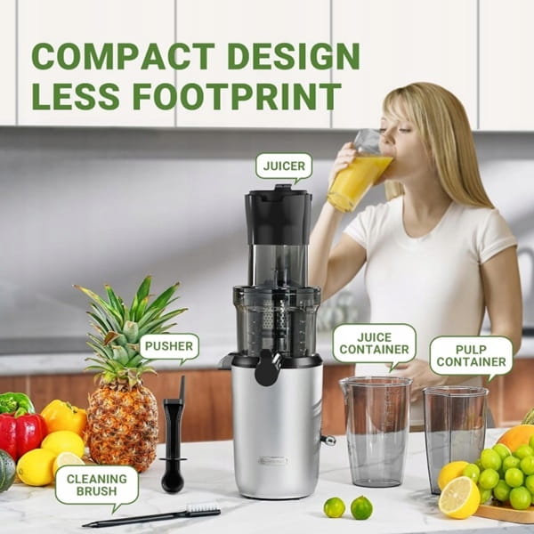 - Zwycięzca testu Slow Juicer pracuje tak cicho, z prędkością poniżej 60 decybeli i nie będzie przeszkadzać Twojej rodzinie i sąsiadom.