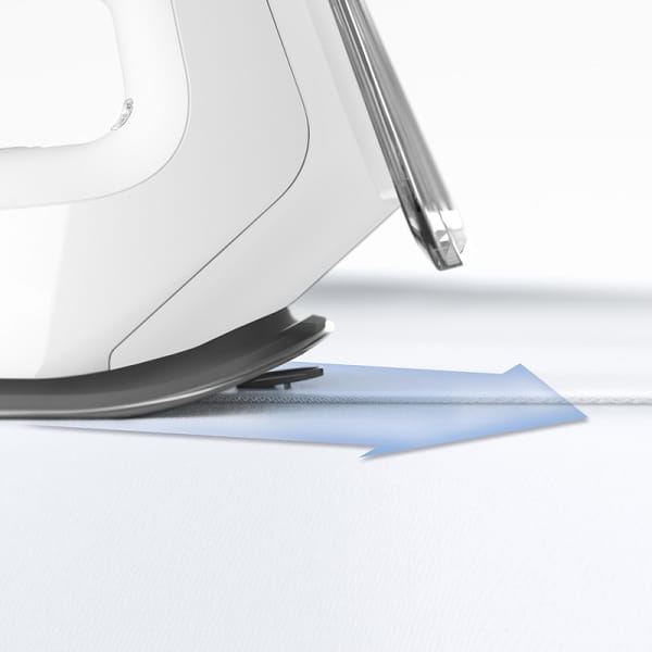- Pierwsza na świecie stopa 3D FreeGlide z zaokrąglonymi krawędziami i ściętymi brzegami, umożliwia sprawne manewrowanie żelazkiem we wszystkich kierunkach, bez marszczenia materiału.