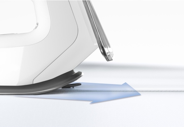 - Precyzyjny wyrzut pary z czubka żelazka umożliwia łatwe rozprasowanie najtrudniejszych zagnieceń w trudno dostępnych miejscach, takich jak kołnierze czy szwy.