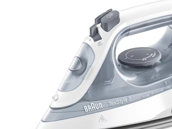 - Żelazko Braun TexStyle 3 z unowocześnionym designem, większą mocą i lepszą wydajnością pary.