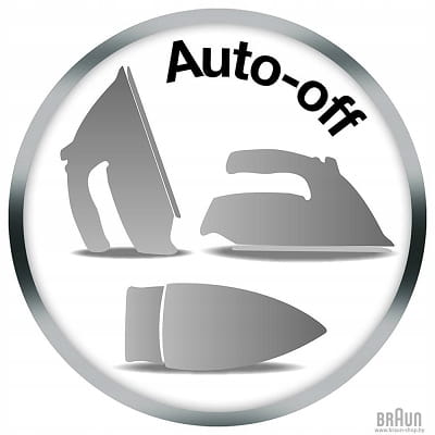 - Funkcja auto-off automatycznie wyłącza żelazko parowe po 8 minutach w pozycji pionowej lub po 1 minucie w pozycji poziomej, zapewniając bezpieczeństwo i oszczędność energii.